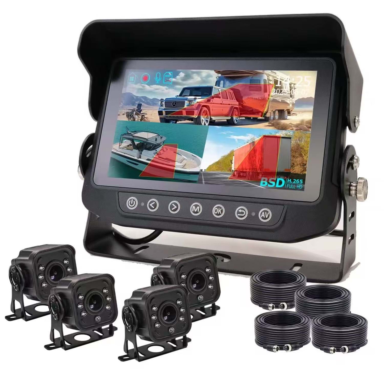 Monitör yerleşik yüksek bilgi işlem gücü Al akıllı ana kontrol çipi ve yüksek çözünürlüklü geniş dinamik ışığa duyarlı anakart, çıkış görüntüsü hareketli nesne bilgilerinde geri dönüş riskini izleyebilir ve tanımlayabilir, sürüş güvenliğini büyük ölçüde artırır.